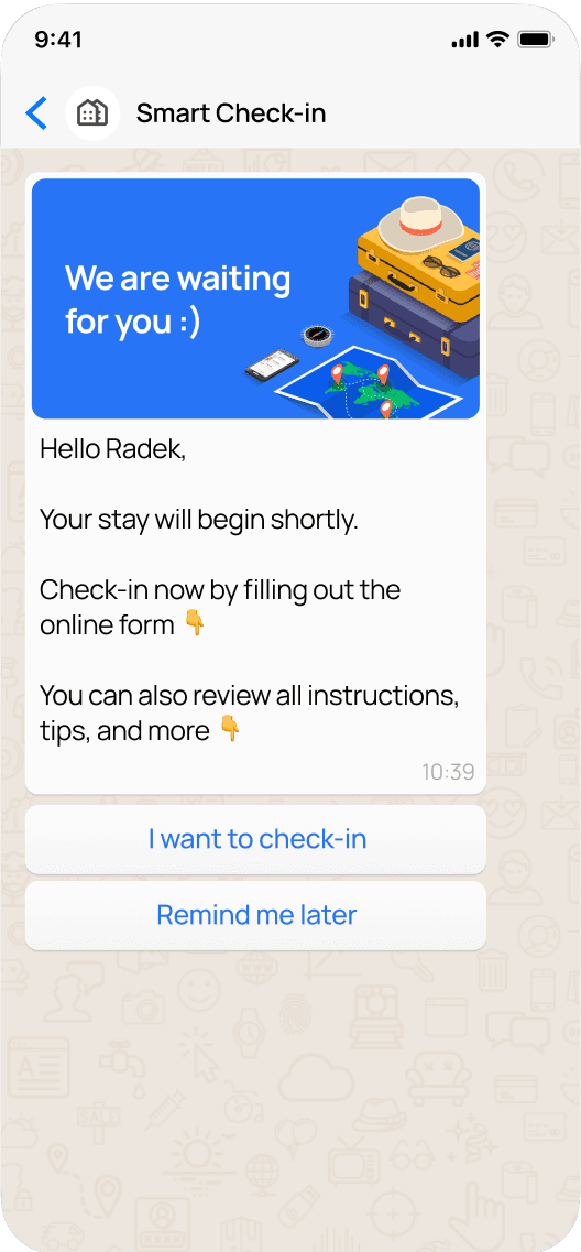 Guests will get the most important information automatically: remote check-in link, entry instructions, key information without manual dispatch.